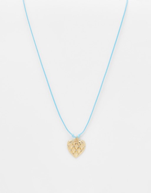 DesignB London – Guldfärgat rephalsband med hammrad hjärthänge