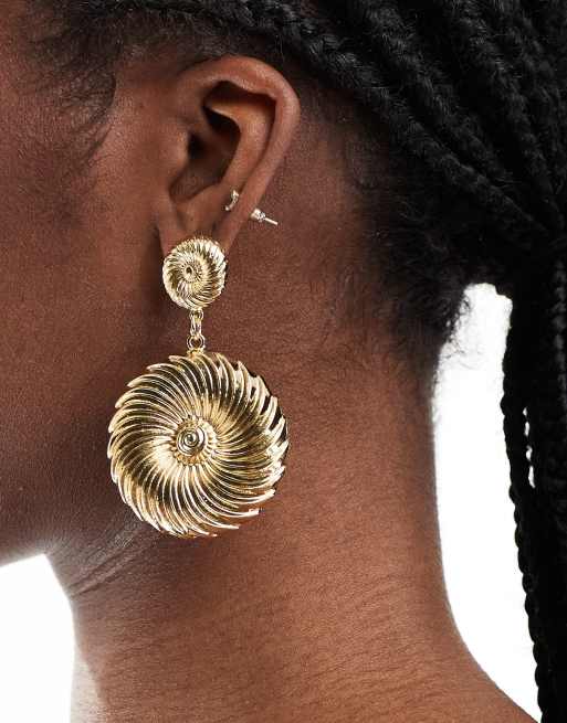 DesignB London – Guldiga, borstade örhängen i statementstil med virveltextur