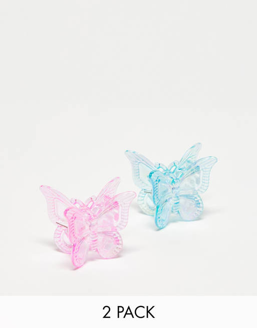 DesignB London – Rosa och blå, regnbågsskimrande, fjärilsformade hårklämmor, 2-pack