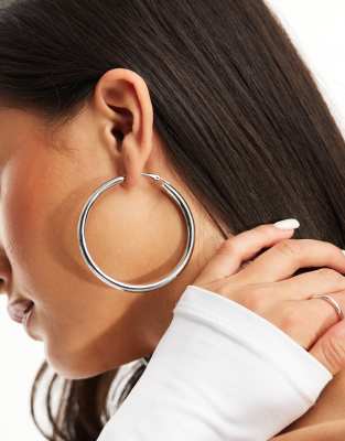DesignB London – Silverfärgade stora creoler, 60mm