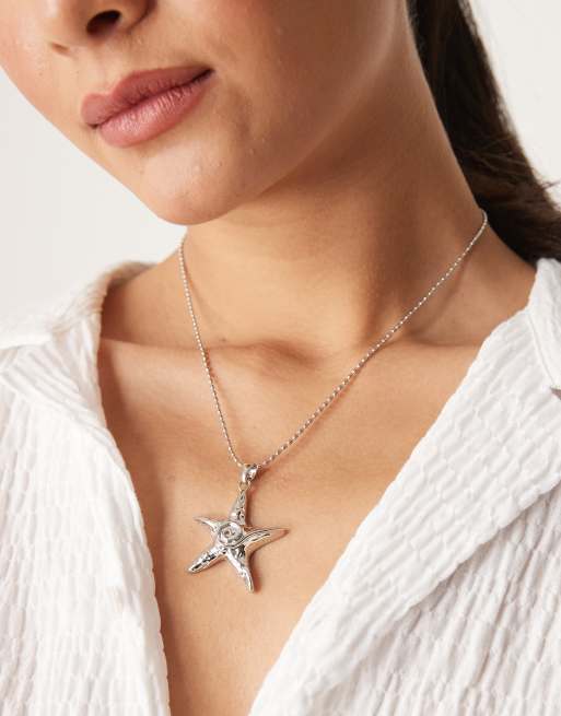DesignB London – Silverfärgat halsband med texturerad sjöstjärna