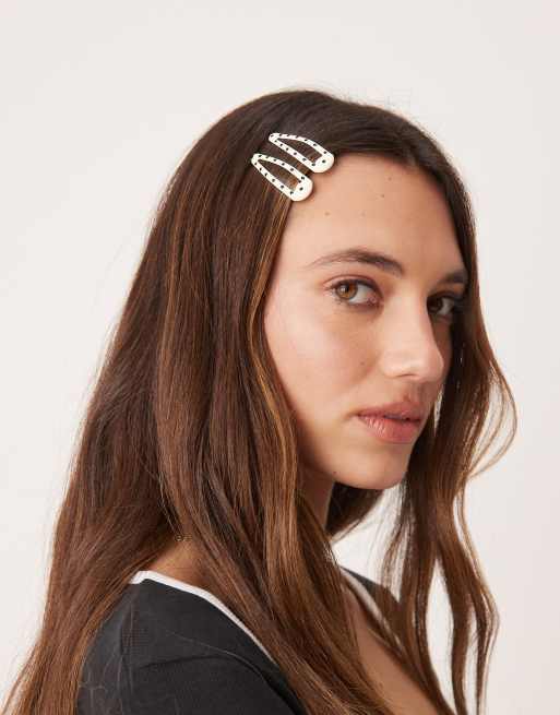 DesignB London – Svart och vitprickig hårklämmor, 4-pack