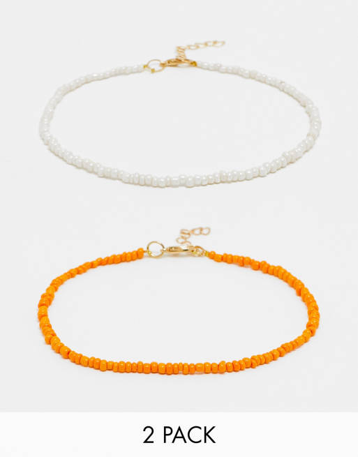 DesignB London – Vita och orange fotlänkar med pärlor, 2-pack