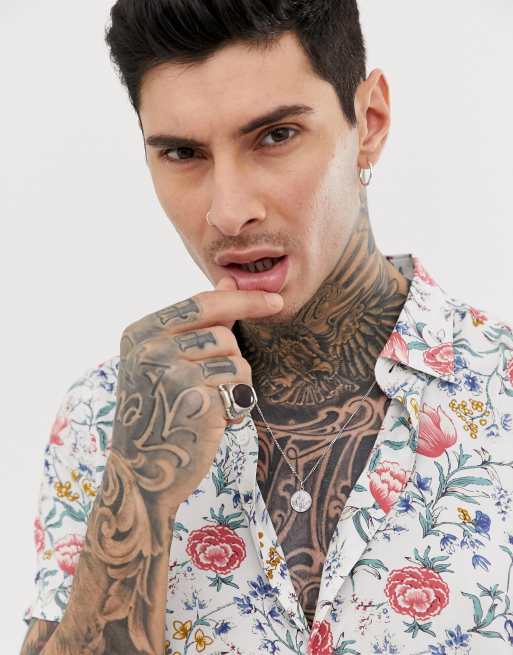 Devils Advocate – Blommig kortärmad viskosskjorta i oversize-modell