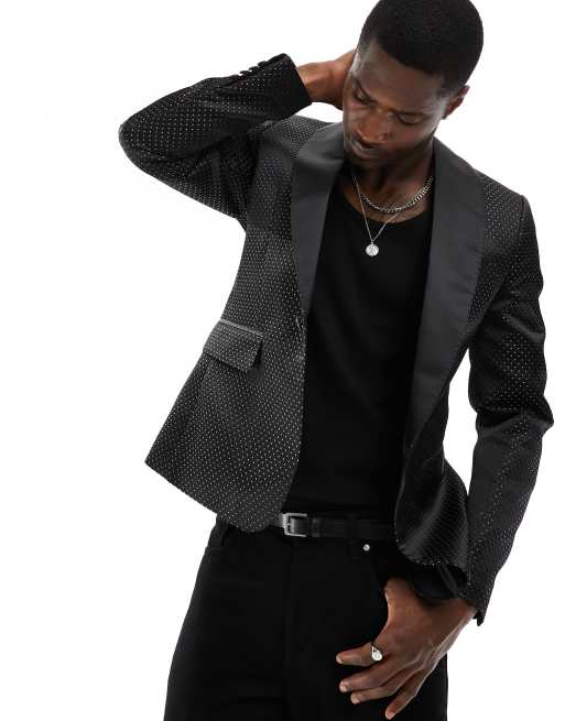 Devil's Advocate – Svartmönstrad kavaj med smal passform och slag i satin