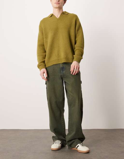 Dickies – Gröna, blektvättade snickarjeans med ledig passform och kontrastsömmar