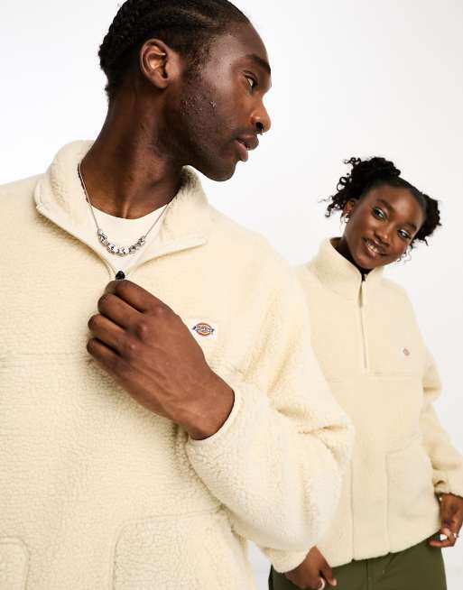 Dickies – Mountain Hope – Ljusbeige sweatshirt i fleece med långa fibrer och 1/4-dragkedja