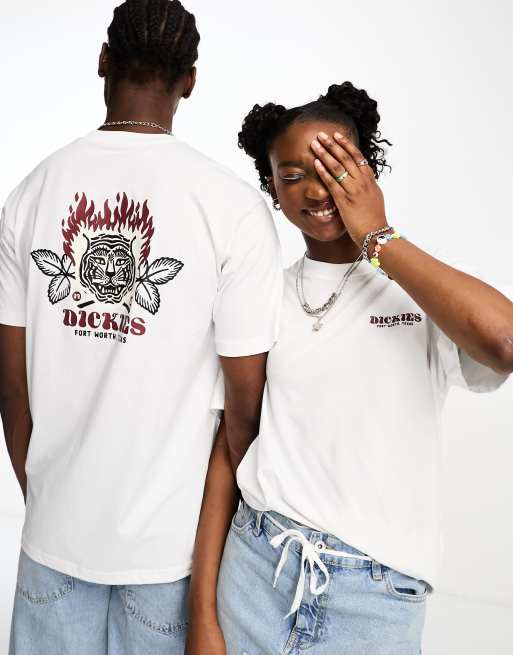 Dickies – Rich Creek – Vit t-shirt med tigertryck baktill