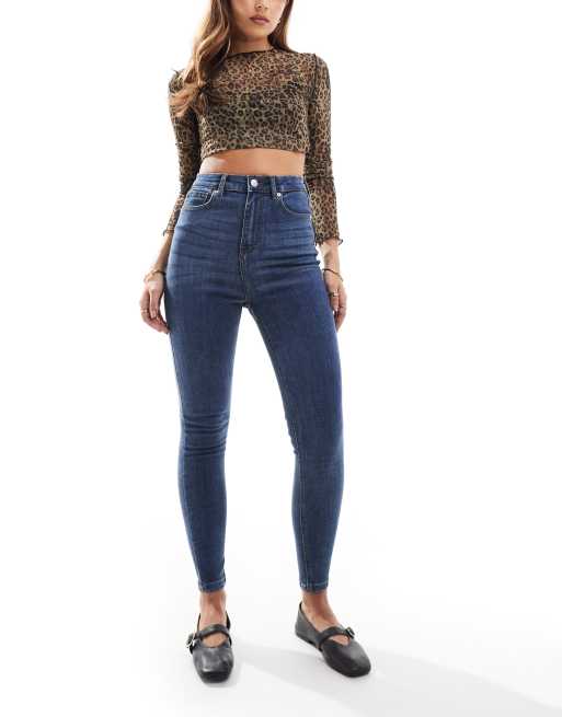 DTT – Ellie – Mellanblå, smala jeans med hög midja