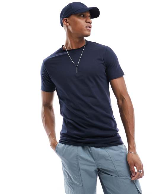 DTT – Marinblå t-shirt med råskuren fåll
