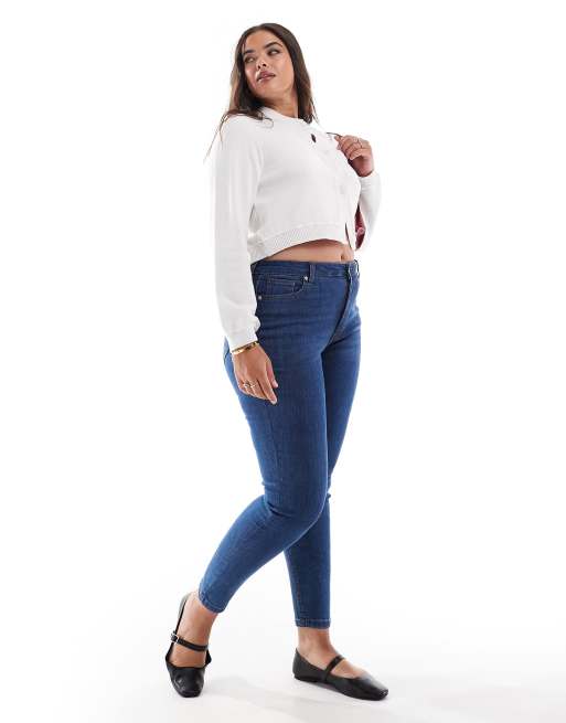 DTT Plus – Jo – Skinny jeans med medelhög midja och mellanblå tvätt