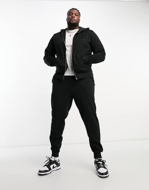 DTT Plus – Svart träningsoverall med huvtröja med dragkedja och mjukisbyxor