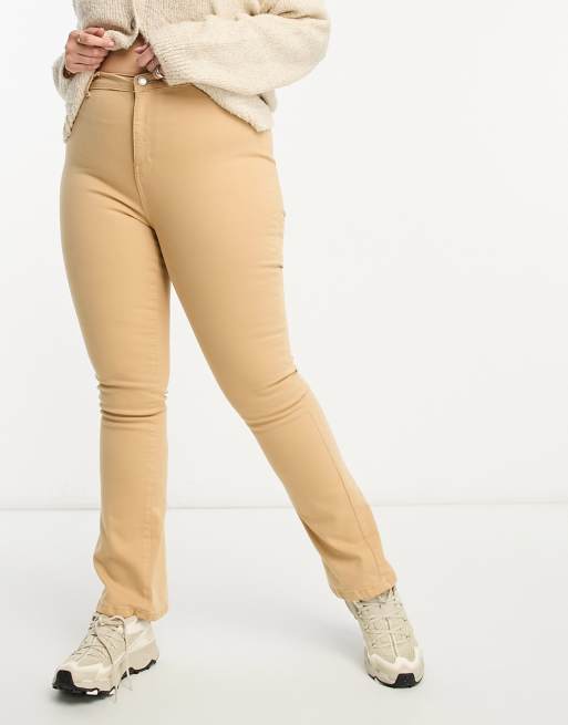 DTT – Plusstorlek – Bianca – Kamelbruna discojeans med hög midja och vida ben