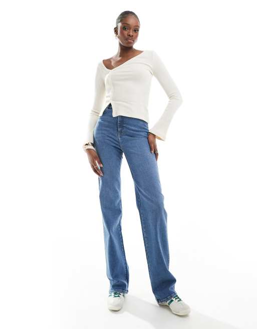 Dr Denim Tall – Moxy – Blå, raka jeans med sliten fåll