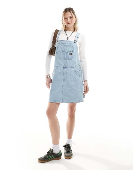 Dr Denim – Connie – Superljus,smågrusigt retrotvättad hängselklänning i minilängd med avslappnad passform