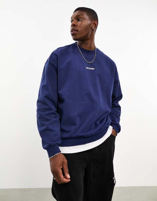 Dr Denim – Kenan – Marinblå kraftig sweatshirt med ledig passform och rund halsringning