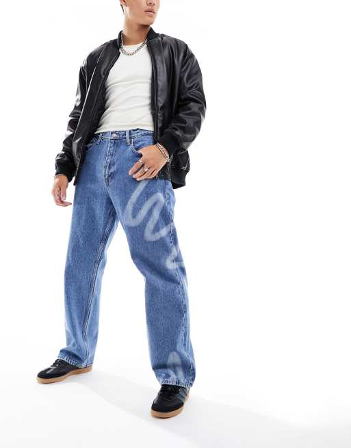 Dr Denim – Omar – Blå jeans med vida ben och sprayfärgat retromönster