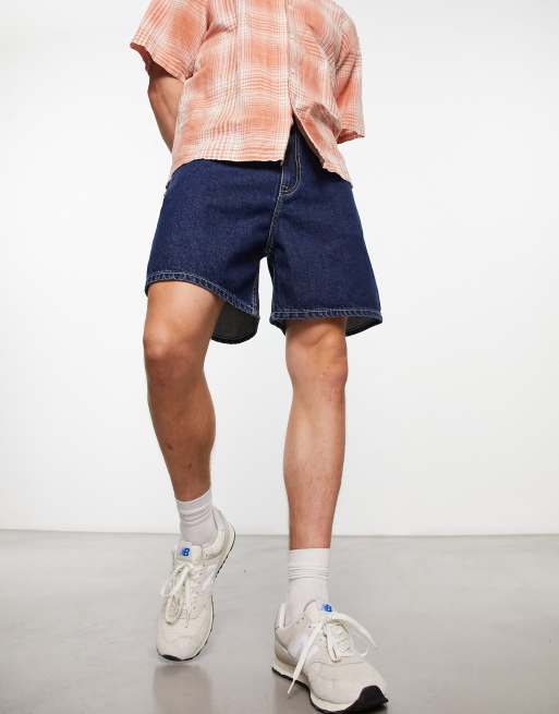 Dr Denim – Roan – Mörka, stenfärgade, baggy shorts i kort design och retrostil