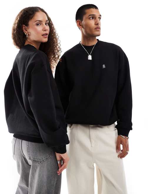 Dr Denim – Unisex – Kenan – Svart, kraftig och avslappnad sweatshirt med rund halsringning