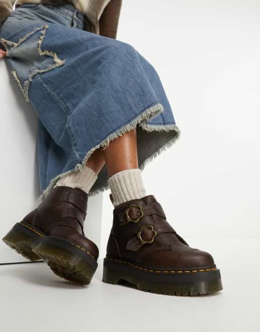 Dr. Martens – Devon – Mörkbruna boots i grovt läder med spännen i blom-design