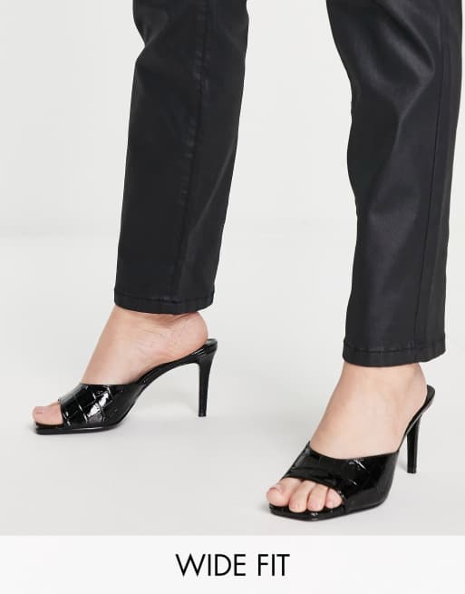 Dune – London – Svarta krokodilskinnsmönstrade mules i PU med klackar och fyrkantig tå