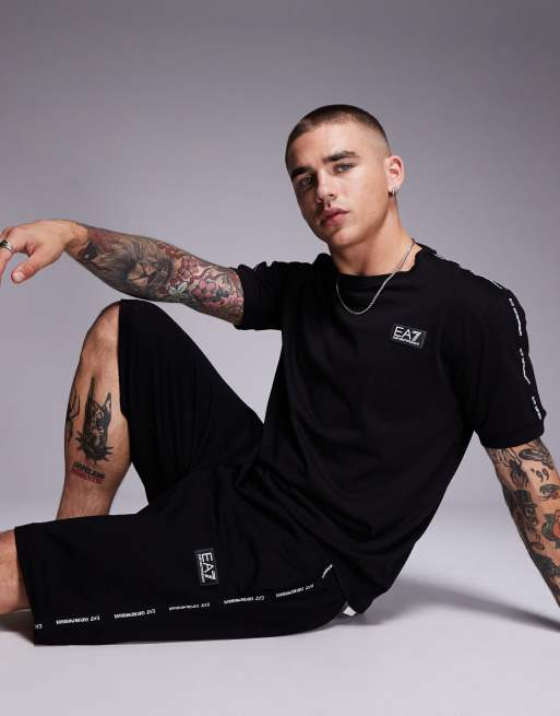 Armani – EA7 – Svarta sweatshorts med tejpad logga, del av set