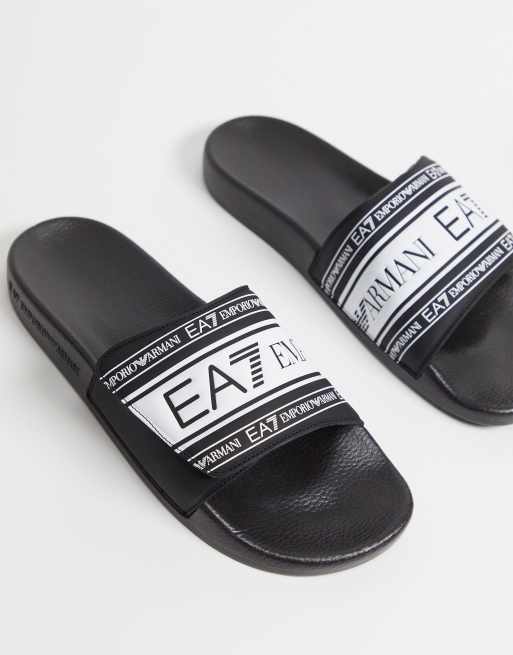 Armani – EA7 – Svarta tofflor med tejpad logga och kardborreband