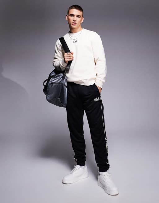 EA7 – Ljusbeige sweatshirt med logga framtill