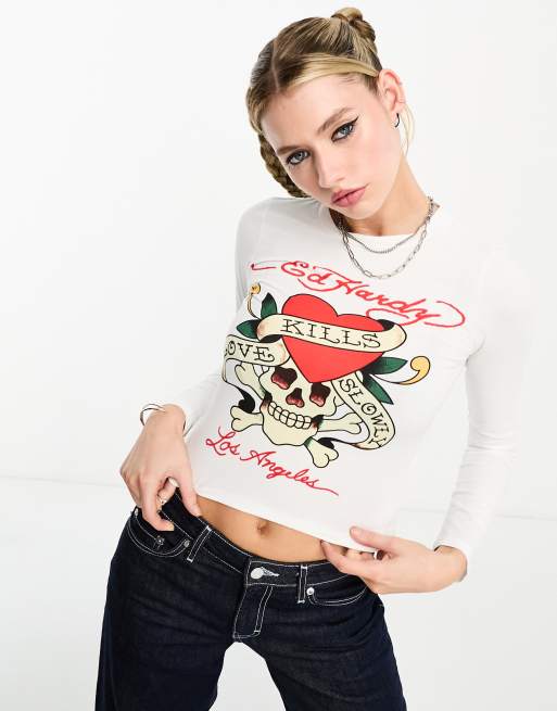Ed Hardy – Långärmad åtsmitande topp med röd dödskalle