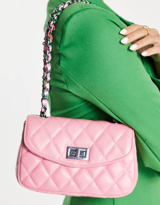 Ego – Rosa kviltad miniväska med axelrem i scarfmaterial