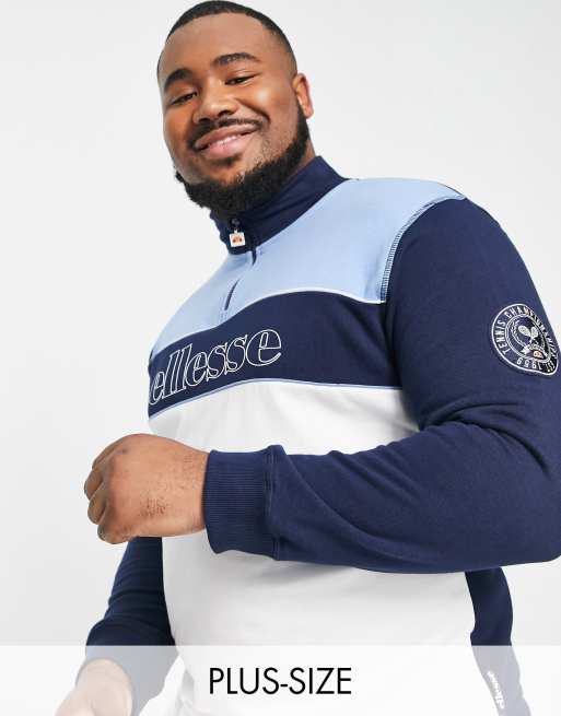 ellesse Plus – Blå blockfärgad sweatshirt med halvlång dragkedja