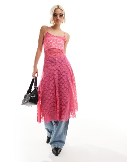 Emory Park – Fuchsiarosa midaxiklänning i spets