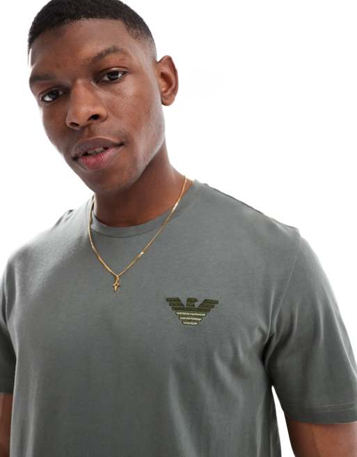 Emporio Armani – Kakifärgad t-shirt med rund halsringning och logga, del av set