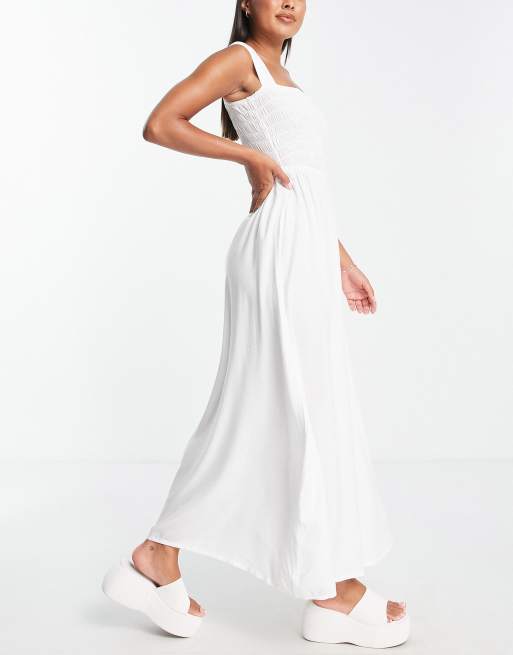 Esmee – Exclusive – Vit, lång sommarklänning för stranden med stor smock