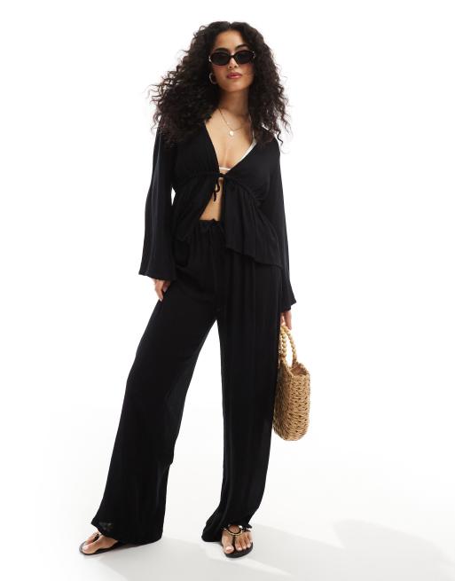 Esmée – Svarta krinklade strandshorts med knytning, del av set