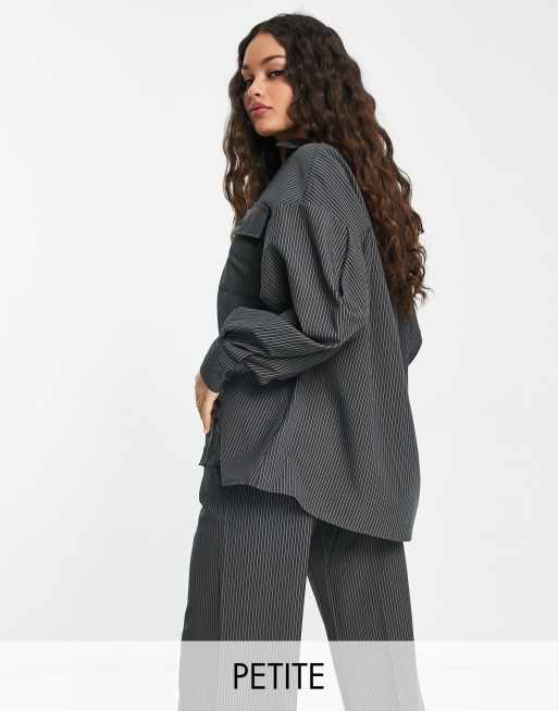 Extro & Vert Petite – Skiffergrå, kritstrecksrandig oversize skjorta, del av set