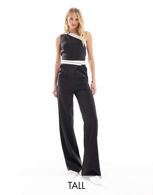 Extro & Vert Tall – Kritstrecksrandig, enaxlad jumpsuit med midjedetalj