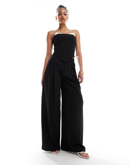 Extro & Vert Tall – Svart och vitt set med byxor och korsettopp med behådetalj