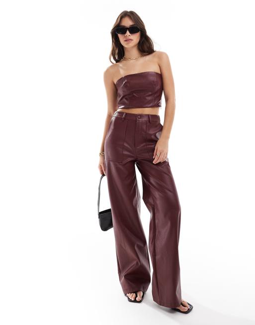 Extro & Vert – Oxblodsrött set med byxor och bandeau-topp i PU, del av set