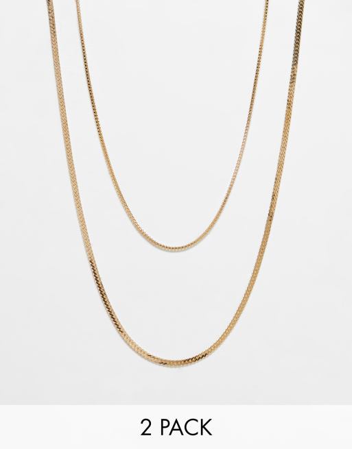 Faded Future – Guldfärgat kedjehalsband med platt ormkedja och boxkedja, 2-pack