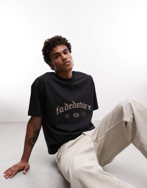 Faded Store – Svart t-shirt med gotisk logga baktill