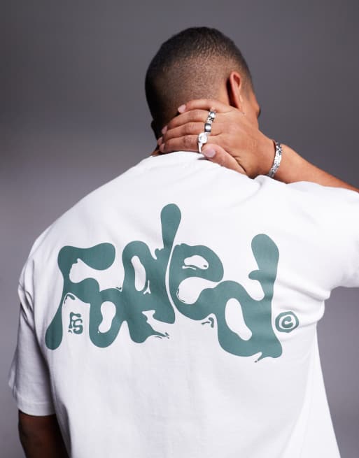 Faded Store – Vit t-shirt med kontrastfärgad, böljande logga baktill