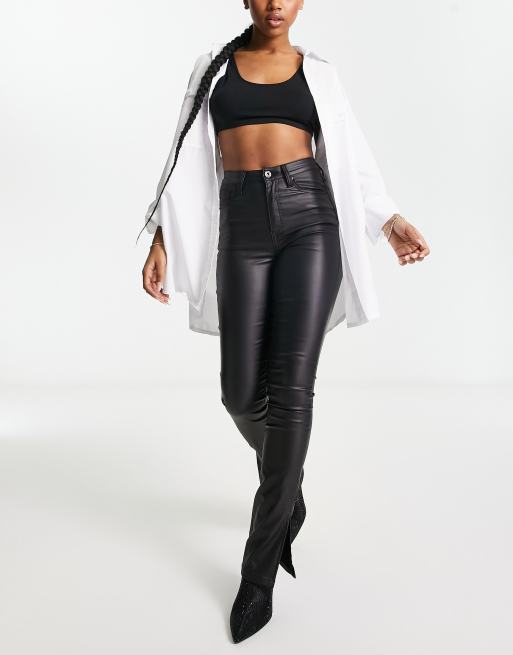 Fae – Svarta byxor med läderlook, hög midja och fållslits