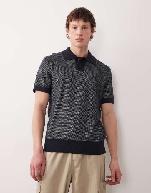 Farah – Birch – Marinblå, stickad pikétröja med korta ärmar och logga