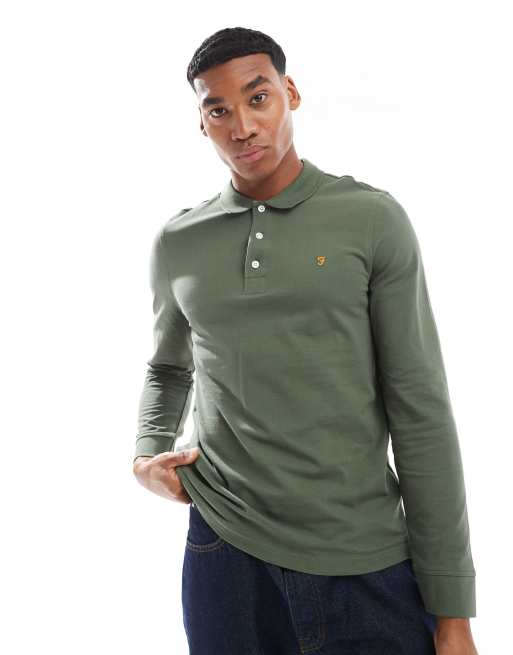 Farah – Blanes – Khakigrön pikétröja med långa ärmar