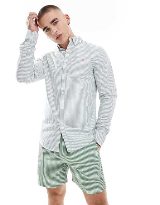Farah – Brewer – Grön och vit skjorta med långa ärmar