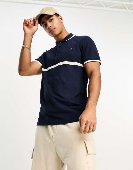 Farah – Everglade – Marinblå pikétröja med bröstrand