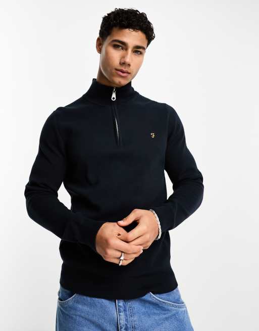 Farah – Louder – Marinblå stickad tröja med 1/4-lång dragkedja