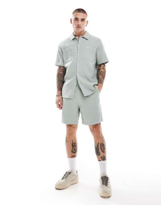 Farah – Redwald – Salviagröna shorts med våfflad textur, del av set