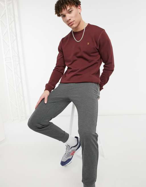 Farah – Tim – Rödmelerad sweatshirt med rund halsringning av bomull